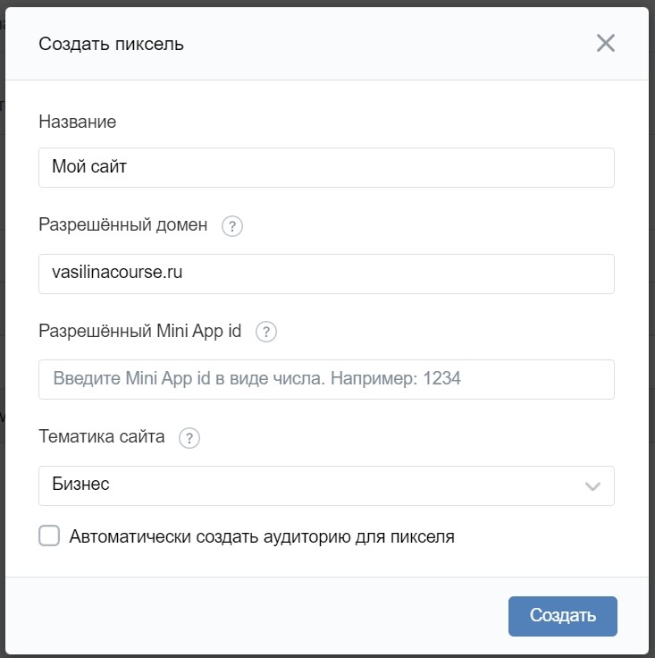 В первую очередь потребуется создать пиксель ВК, в который мы будем передавать данную информацию и установить его код на сайт. Если у Вас уже настроена эта часть, Вы можете ее пропустить.
